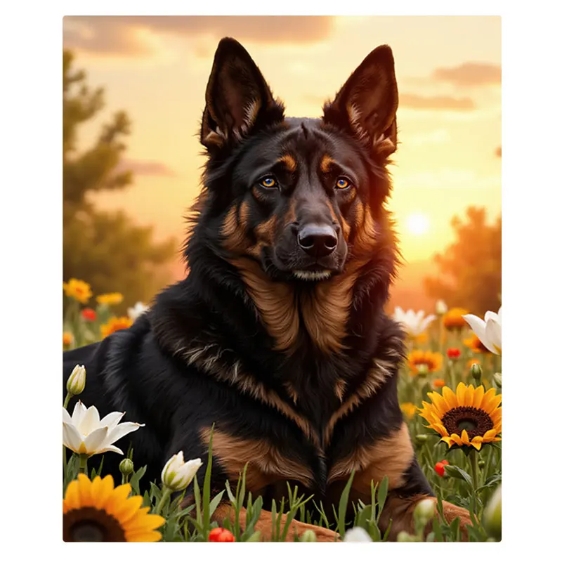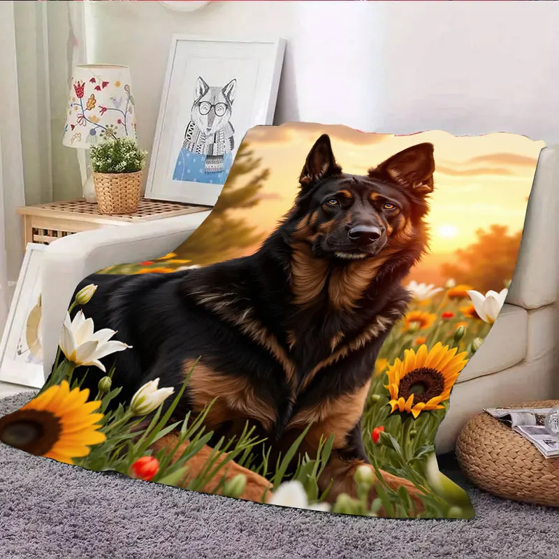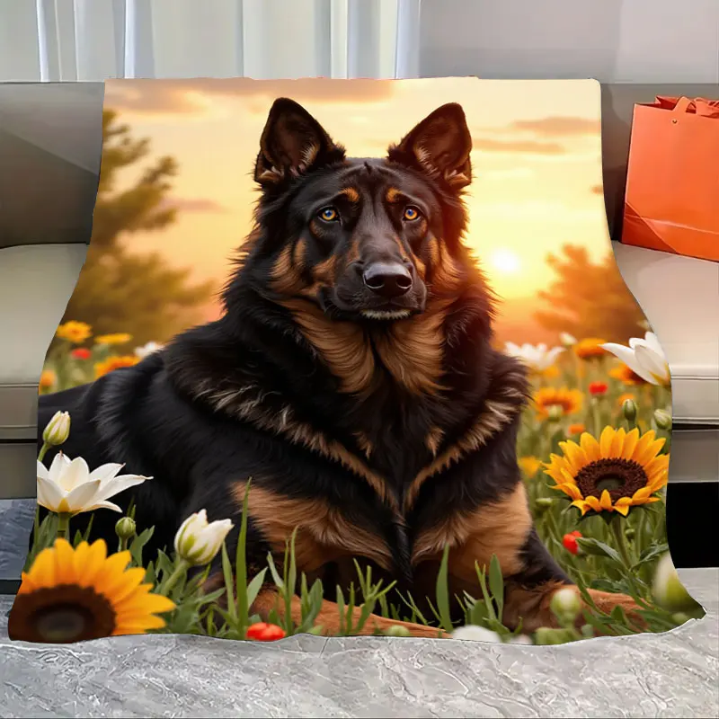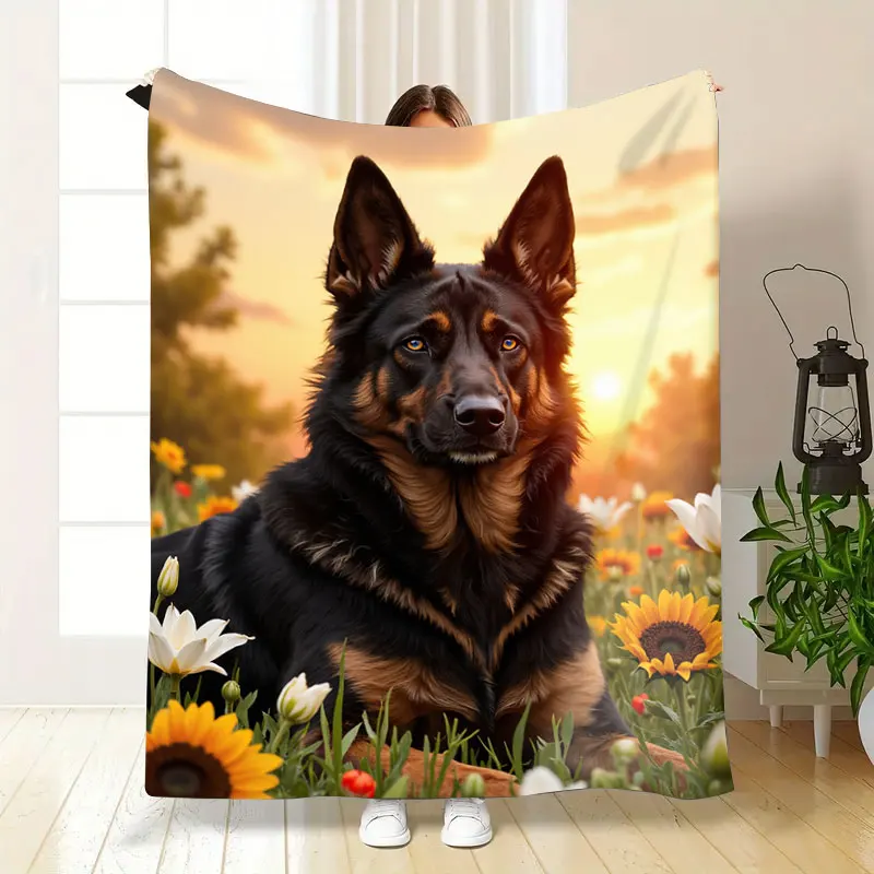 1pc Flannel Blanket German Shepherd in Sunflower Field Cozy Fleece Blanket