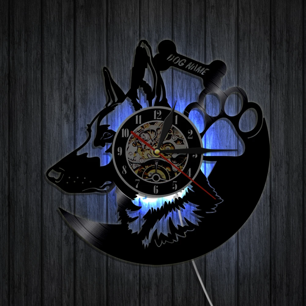 German Shepherd Dog Wall Art Decorative Wall Clock with Custom Dog Name